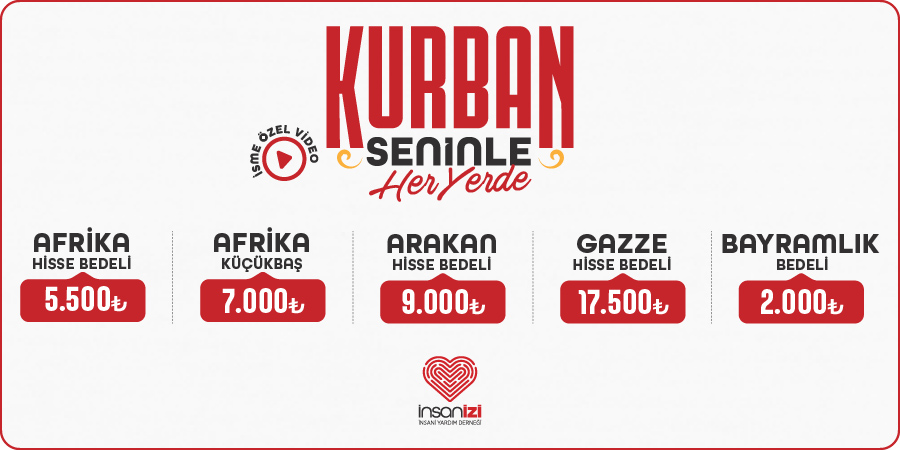 İnsan İzi Derneği olarak, yılların tecrübesiyle 2026 yılı Kurban Bayramı hazırlıklarımızı tamamladık. Afrika başta olmak üzere birçok mazlum coğrafyada kurban ibadetinizi İslami usullere uygun şekilde yerine getiriyor, bağışlarınızı gerçek ihtiyaç sahiplerine ulaştırıyoruz. Sizin desteklerinizle, emanetlerinizi bayram sevincine dönüştürüyoruz.